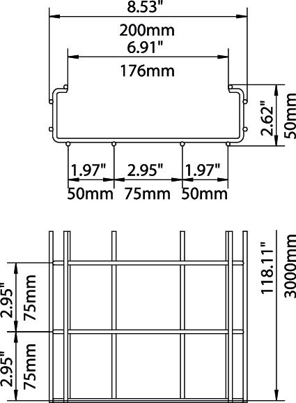 Opis izdelkaMrežna polica v C-obliki iz jeklenih žic višine 50 mm.