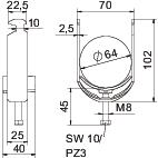 Opis izdelkaClamp clip with hammerhead foot, plastic pressure sleeve made of polypropylene. For vertical and horizontal mounting of 1 single cable on a C-profile rail. For a slot width 16–17 mm. With 1-start screw thread on pressure sleeve, universal hexagonal screw head WAF10, with slot and cross recess. Suitable for assembly indoors and outdoors. We recommend the use of a counter-sleeve.