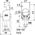 Opis izdelkaClamp clip with U-foot, plastic pressure sleeve made of polypropylene. For vertical and horizontal mounting of 1 single cable on a C-profile rail. For slot width 18–22 mm. With 1-start screw thread on pressure sleeve, universal hexagonal screw head WAF10, with slot and cross recess. Suitable for assembly indoors and outdoors. We recommend the use of a counter-sleeve.