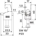 Opis izdelkaClamp clip with U-foot, plastic pressure sleeve made of polypropylene. For vertical and horizontal mounting of 1 single cable on a C-profile rail. For slot width 18–22 mm. With 1-start screw thread on pressure sleeve, universal hexagonal screw head WAF10, with slot and cross recess. Suitable for assembly indoors and outdoors. We recommend the use of a counter-sleeve.