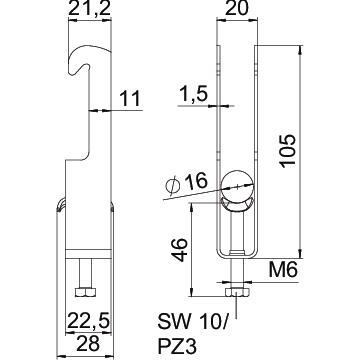 Opis izdelkaClamp clip with W-foot, metal pressure trough with rounded edges to protect the cable. For vertical and horizontal mounting of 2 single cables on angle irons shaft length 40 mm. With 1-start screw thread on pressure trough, universal hexagonal screw head WAF10, with slot and cross recess. Suitable for mounting indoors and outdoors. We recommend the use of a counter-trough.