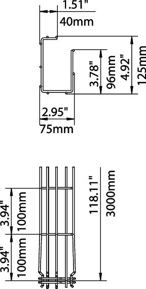 Barva cink Brezvijačne spojke da Dimenzija 125x75x3000 Dolžina 3000 mm Integrirana ločilna pregrada brez Izvedba spojke integrirana spojka Izvedba za daljše razpone ne Korisni presjek 6100 mm² Korisni presjek 61 cm² Material Jeklo Mera A 96 mm Mera B 75 mm Mera C 38 mm Mera H 125 mm Nerjavno jeklo, luženo ne Oblika profila G-oblika Odtis CO2 (GWP) od zibelke do vrat 2,0574 kg CO2e / 1 Meter Ohranitev delovanja naprav ne Površina galvansko cinkano Premer žice 3,9 mm Razmik nosilcev 1,0 m 0,6 kN/m Razmik nosilcev 1,5 m 0,35 kN/m Razmik nosilcev 2,0 m 0,3 kN/m Razmik nosilcev 2,5 m 0,25 kN/m Širina 2,95 in Širina 75 mm Višina 125 mm Višina 4,92 in Vrsta preizkusa obremenitve po IEC 61537 Tip II Vrsta spojke sistema kabelskih nosilcev Zaskočna pritrditev - Vsi tipi
