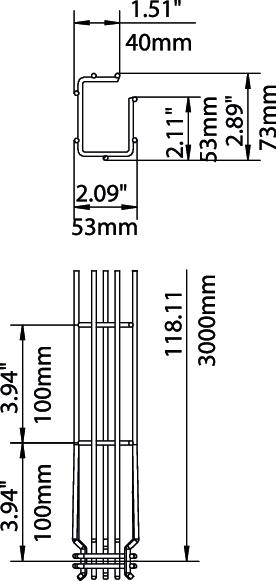 Opis izdelkaMrežna polica G-oblike iz jeklenih žic različne višine in širine.