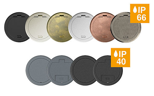 - Raznolike različice: z osmimi različicami pokrovov iz plastike in kovine lahko GES R2 integrirate v številne različne talne obloge. Z zaščitnim razredom IP66 so kovinske različice primerne tudi za mokro negovana tla v notranjih prostorih.