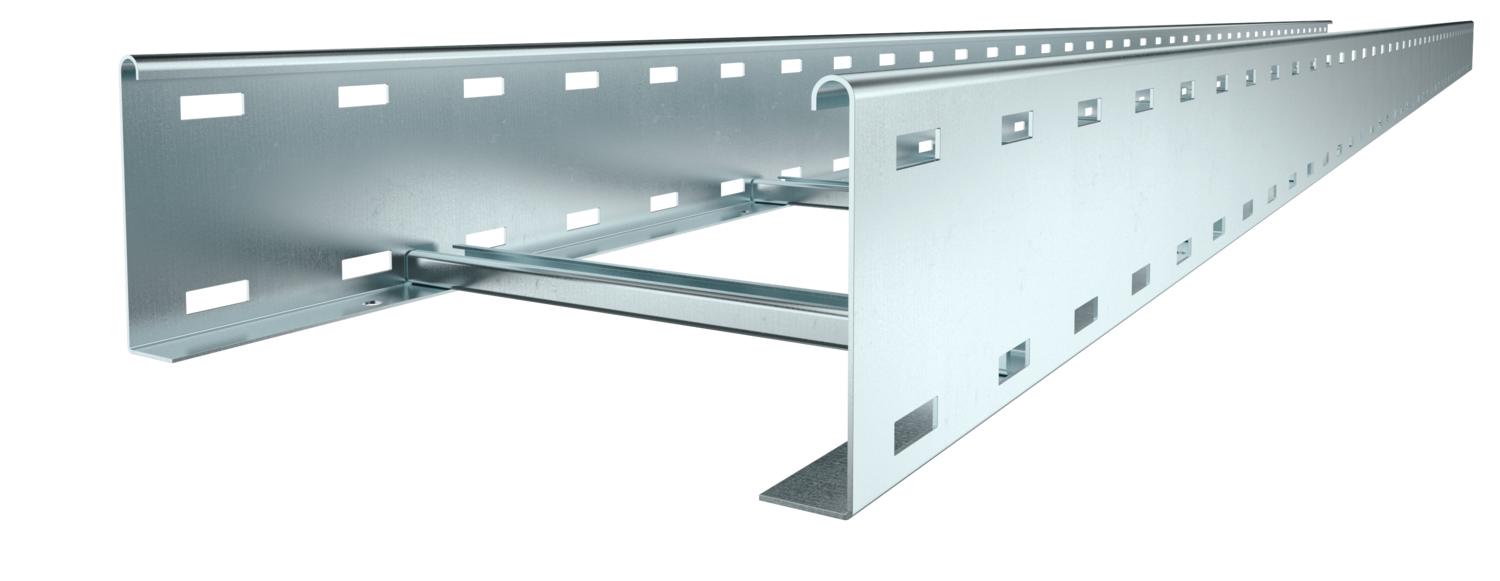 Opis izdelkaKabelska lestev s perforiranim stranskim prečnikom z višino stranice 110 mm in zakovičenimi, navzgor odprtimi prečkami iz C-profila.