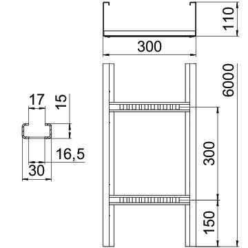 Opis izdelkaWide span cable ladder with perforated side rails of side height of 110 mm. Fastening of cables with clamp clip, type 2056.