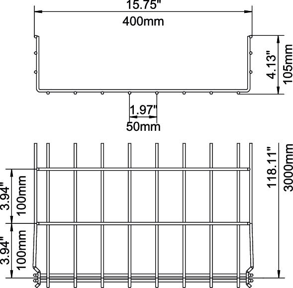 Za mrežno polico niso potrebne dodatne komponente za spajanje, police se preprosto vtaknejo ena v drugo. Širina zanke znaša 50 x 100 mm.