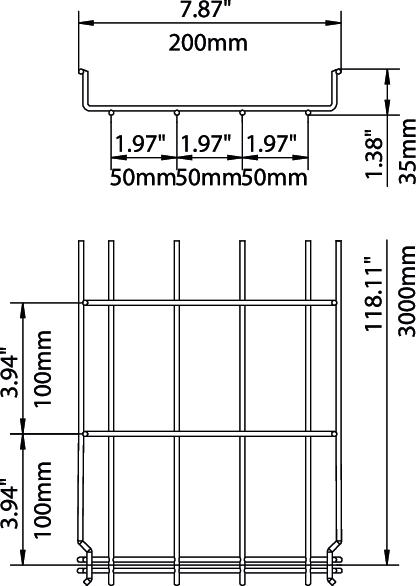 Opis izdelkaMesh cable tray with shaped connector of side height 35 mm.