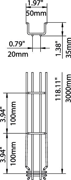 Opis izdelkaMesh cable tray with shaped connector of side height 35 mm.