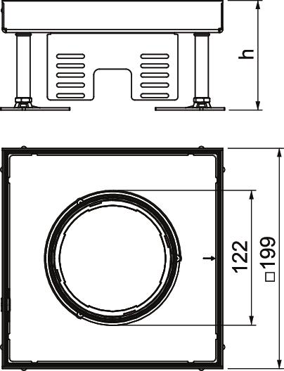 Opis izdelkaNivelirna kaseta velikosti 4, za tubus, za vgradnjo elektroelementov v tla s suhim ali mokrim vzdrževanjem v notranjih prostorih.