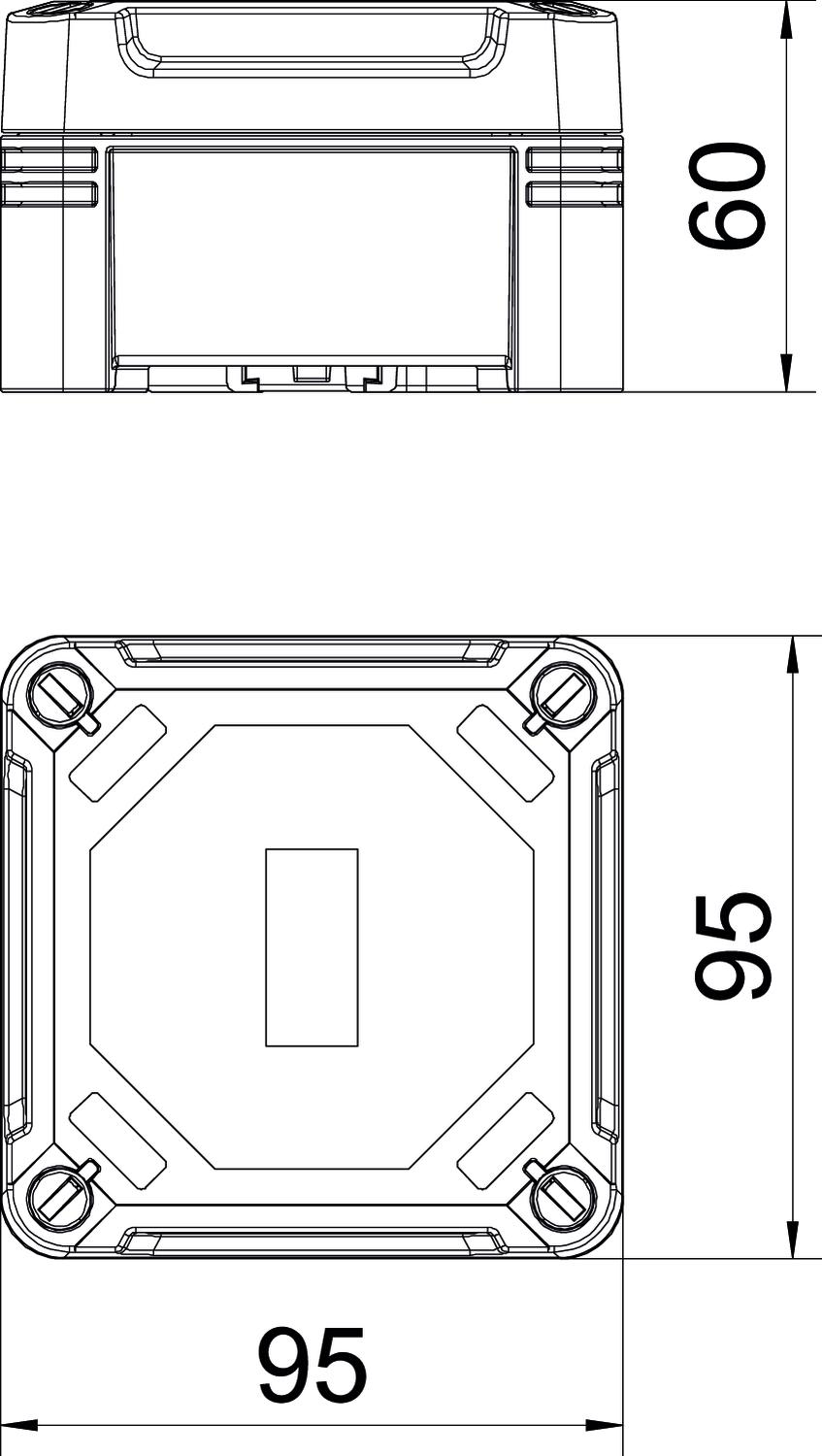 Opis izdelkaJunction box for the connection of cables and lines indoors and in outdoor areas. Square design without entries. Suitable for wall and ceiling mounting with the option to fasten outside, inside or to mount via the corner domes. Particularly impact resistant with IK09. Cover with quick lock, sealable. Made from halogen-free and UV-resistant materials.