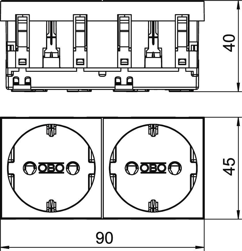 Opis izdelkaPower socket, double 0°, with increased touch protection with screwless terminals, 2-pin, 16 A, 250 V~, with connection terminals to IEC 60884-1.