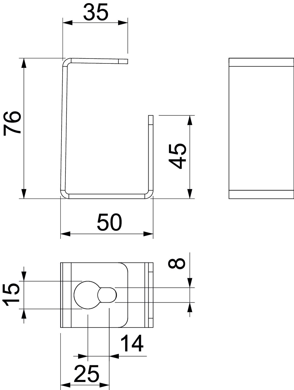 Barva cink Dimenzija 76x45x35 Material Jeklo Mera A 25 mm Mera B 50 mm Mera b 35 mm Mera H 76 mm Mera H 45 mm Način pritrditve vijačno Odtis CO2 (GWP) od zibelke do vrat 0,4016 kg CO2e / 1 Kos Površina neprekinjeno cinkano v ognju Širina kanala znotraj 100 mm Višina kanal znotraj 80 mm - Vsi tipi