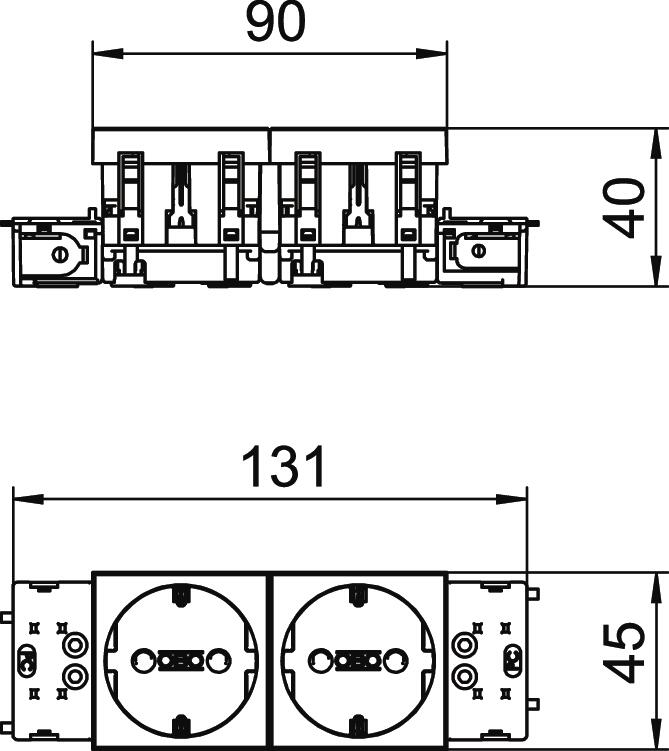 Opis izdelkaProtective contact socket with connection to side, Double 0°, with increased touch protection, with screwless terminals, 2-pin, 16 A, 250 V~, with connection terminals to IEC 60884-1, suitable for the installation in Rapid 45 device installation trunking systems.