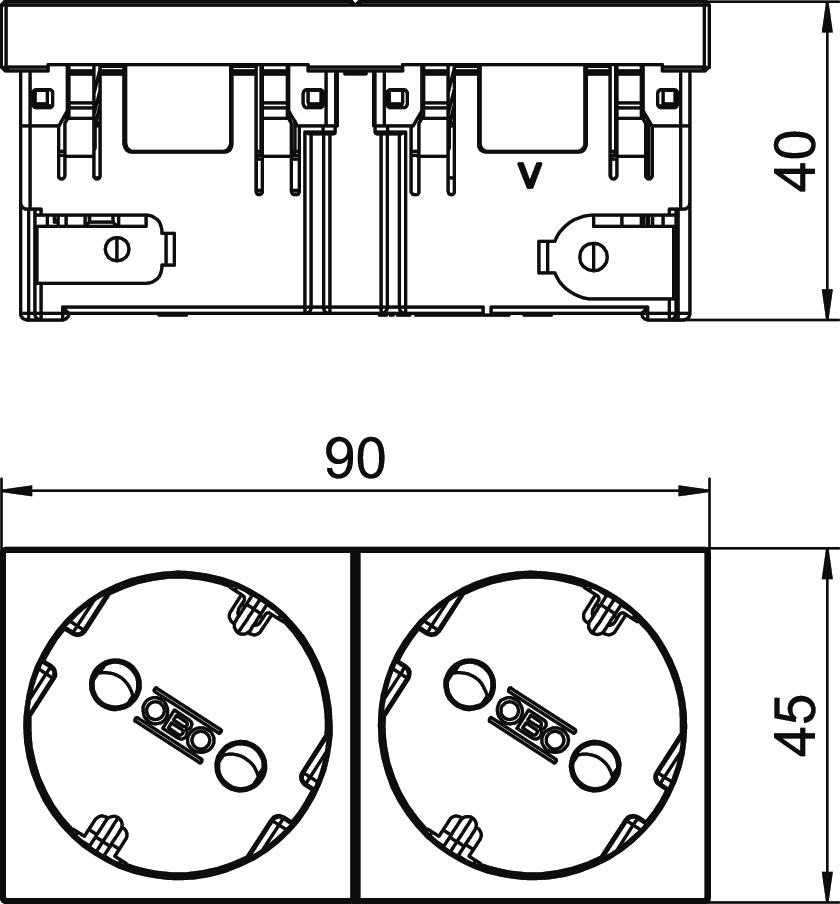 Opis izdelkaProtective contact socket double 33°, with increased touch protection, with screwless terminals, 2-pin, 16 A, 250 V~, with connection terminals to IEC 60884-1.