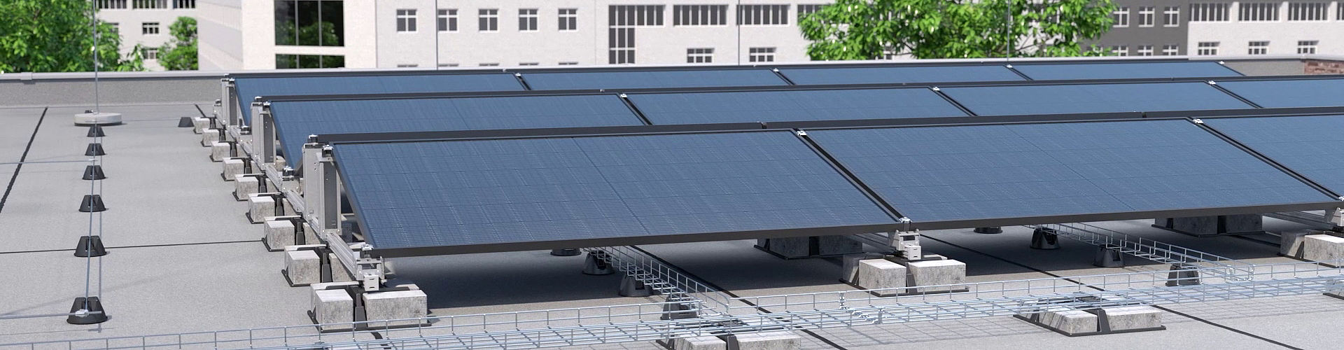 Tako kot sistem za poševne strehe je tudi rešitev Magic PV Solution® za sisteme ravnih streh opremljena s tehnologijo Magic za vgradnjo brez vijakov in orodja ter univerzalno sponko za enostavno pritrditev vseh standardnih fotovoltaičnih modulov na trgu. Poleg tega sistem obtežitve UniBase omogoča spremenljivo obtežitev celotnega sistema s pravokotnimi tlakovci – kadar koli po vgradnji. Sistem Uni-Base lahko po potrebi kombinirate z drugimi izdelki, na primer z adapterjem za mrežaste police tipa 165 MBG HGRM.