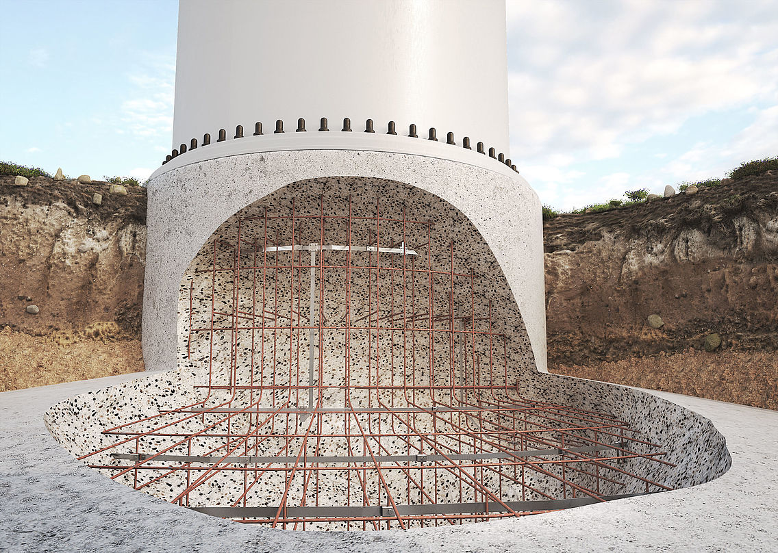 Celovit portfelj rešitev OBO za vetrne turbine se začne tudi pri temeljih: ozemljitveni sistemi OBO odvajajo tokove strele v zemljo in so tudi povezava z zaščitnimi napravami, kot so naprave za prenapetostno zaščito.